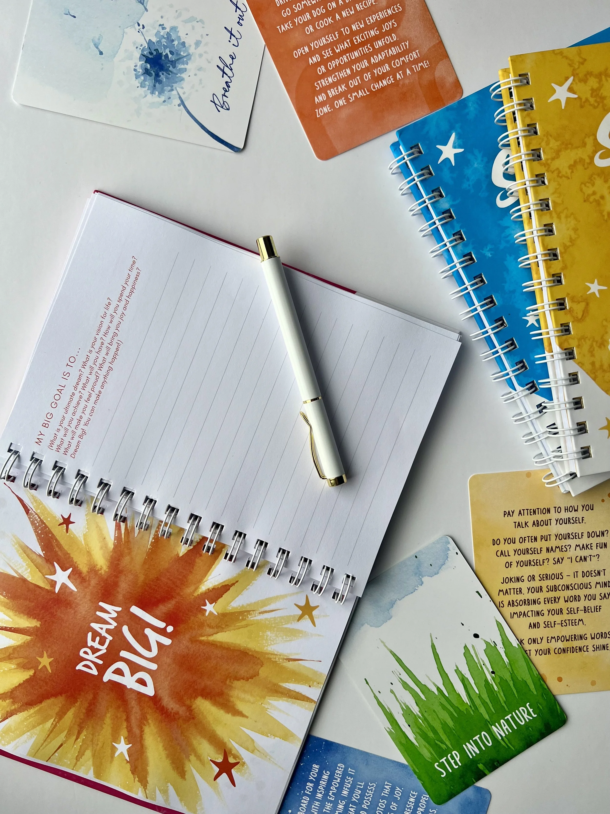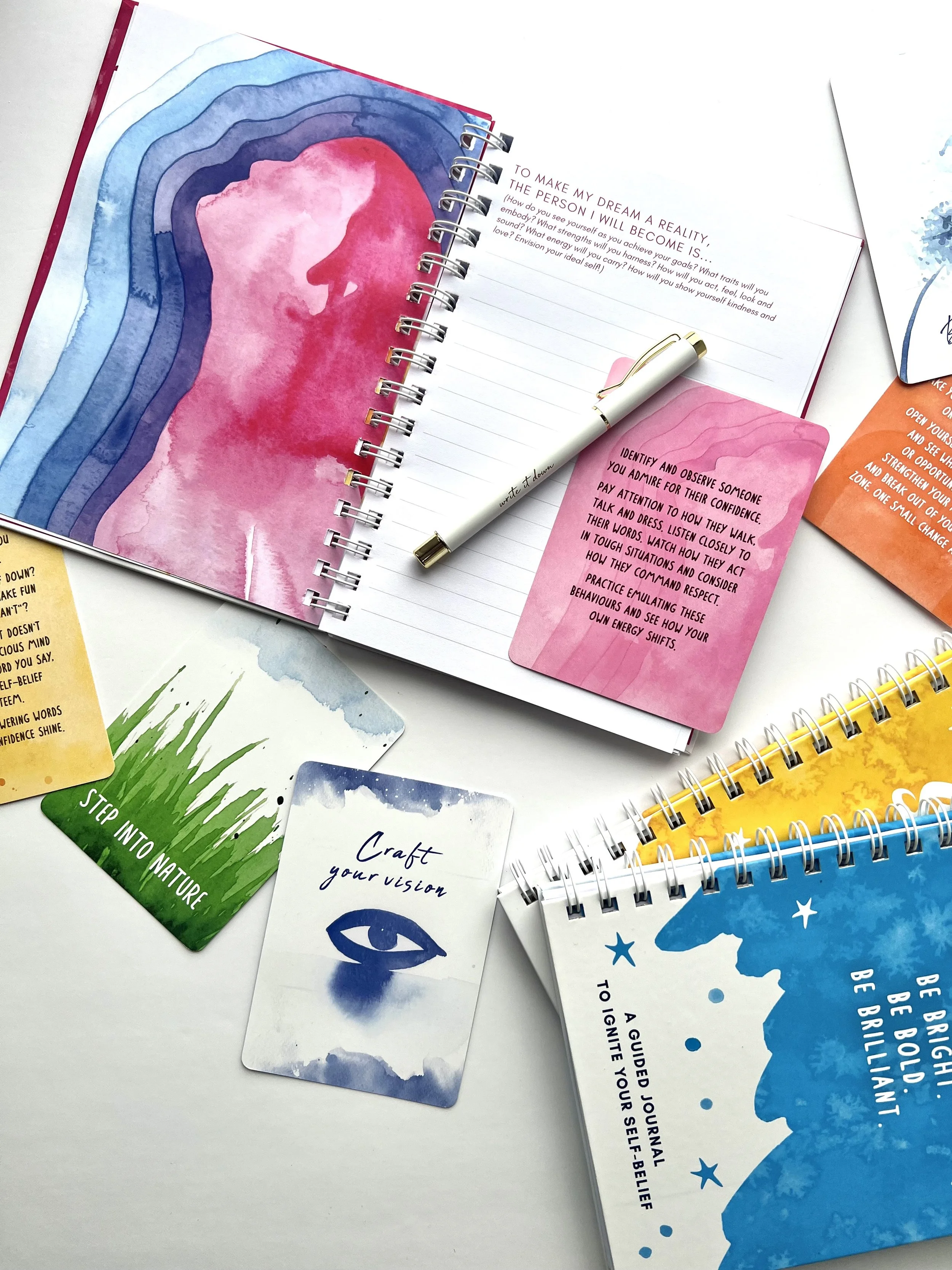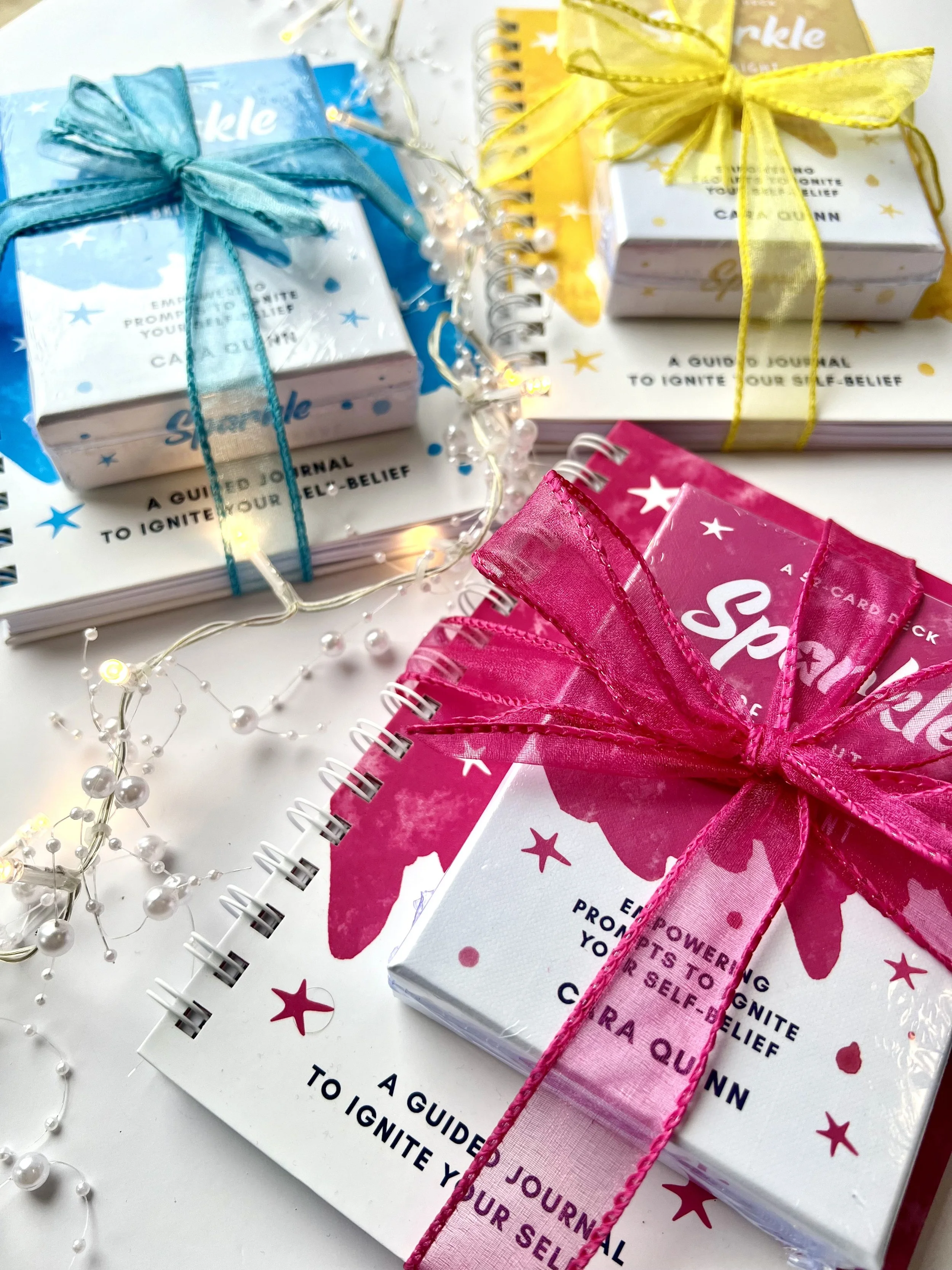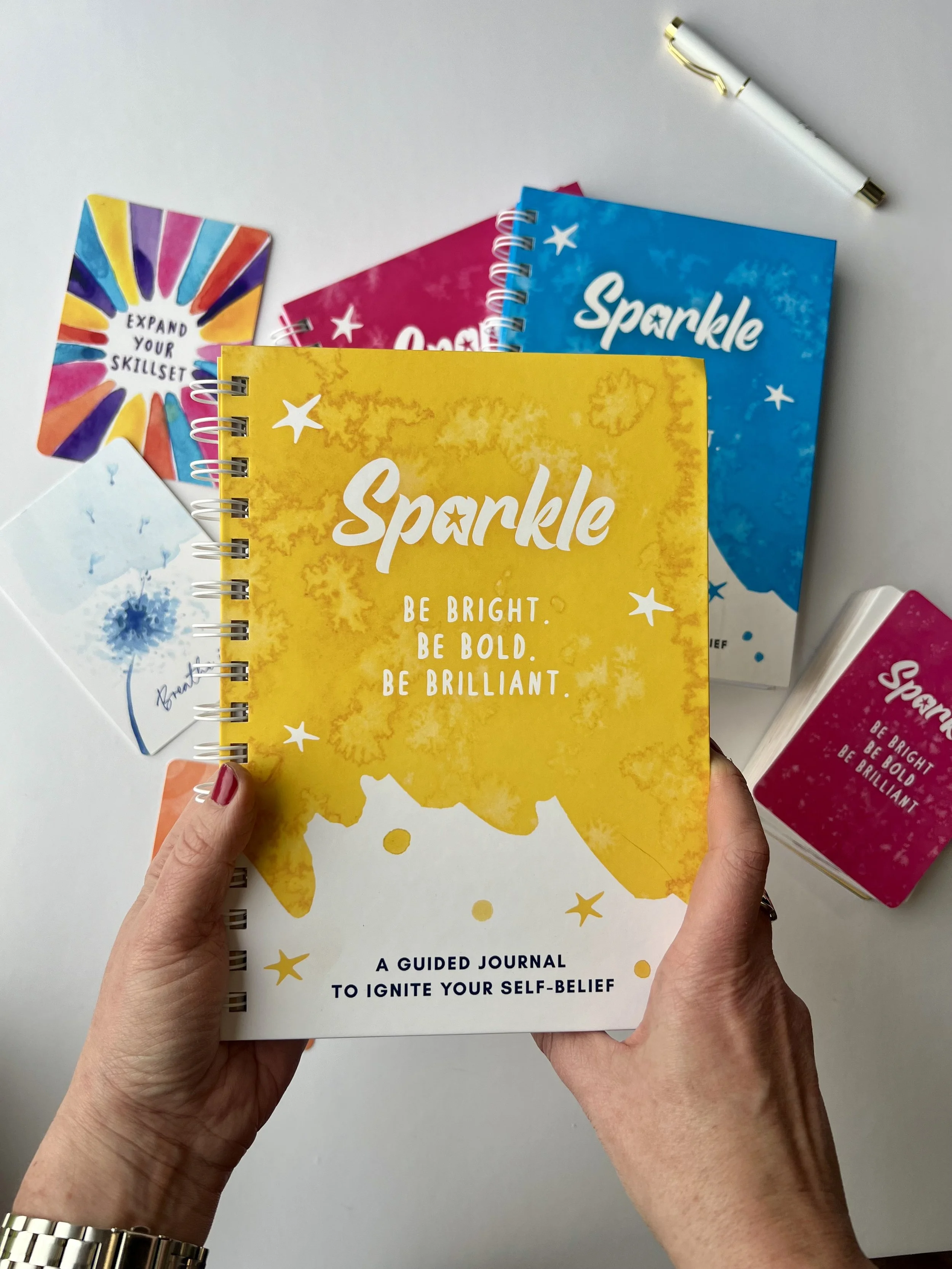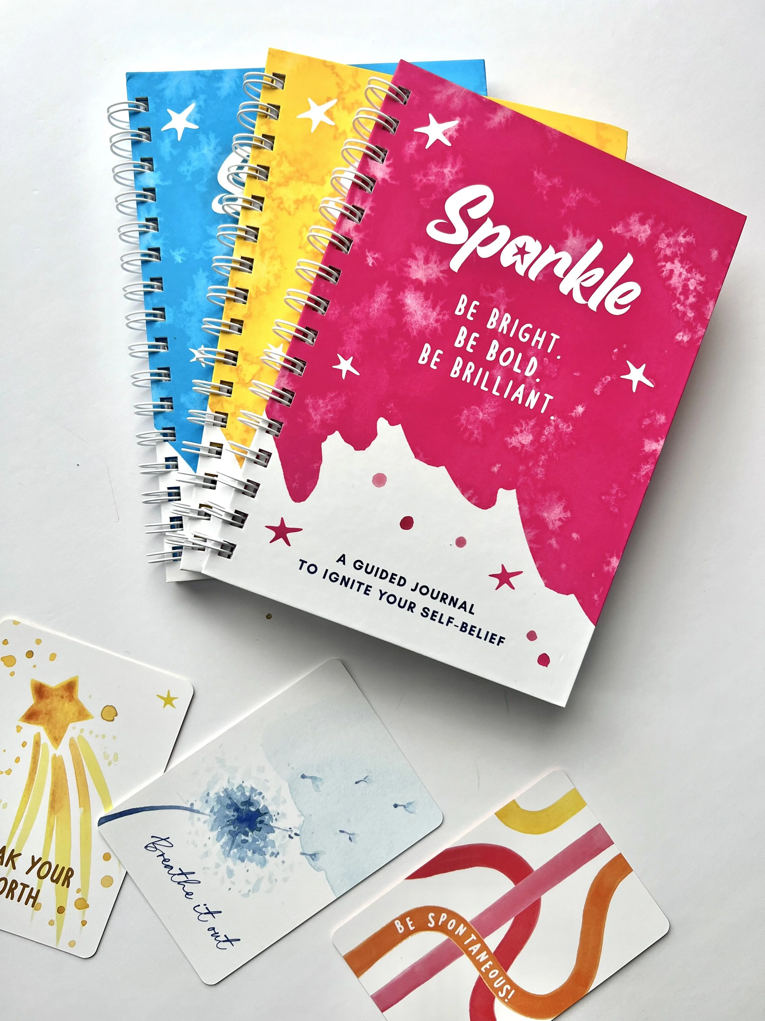 Alongside the card deck, the Sparkle Journal enhances your journey by offering a dedicated space for self-reflection, goal-setting, and celebrating achievements.